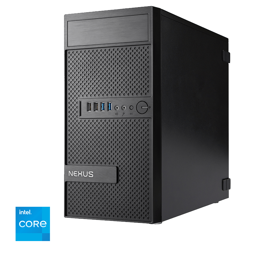 Desktop NEXUS Prime Plus MT, com chassis micro-ATX, suporte para processadores Intel® Core™ Ultra e Memória DDR5