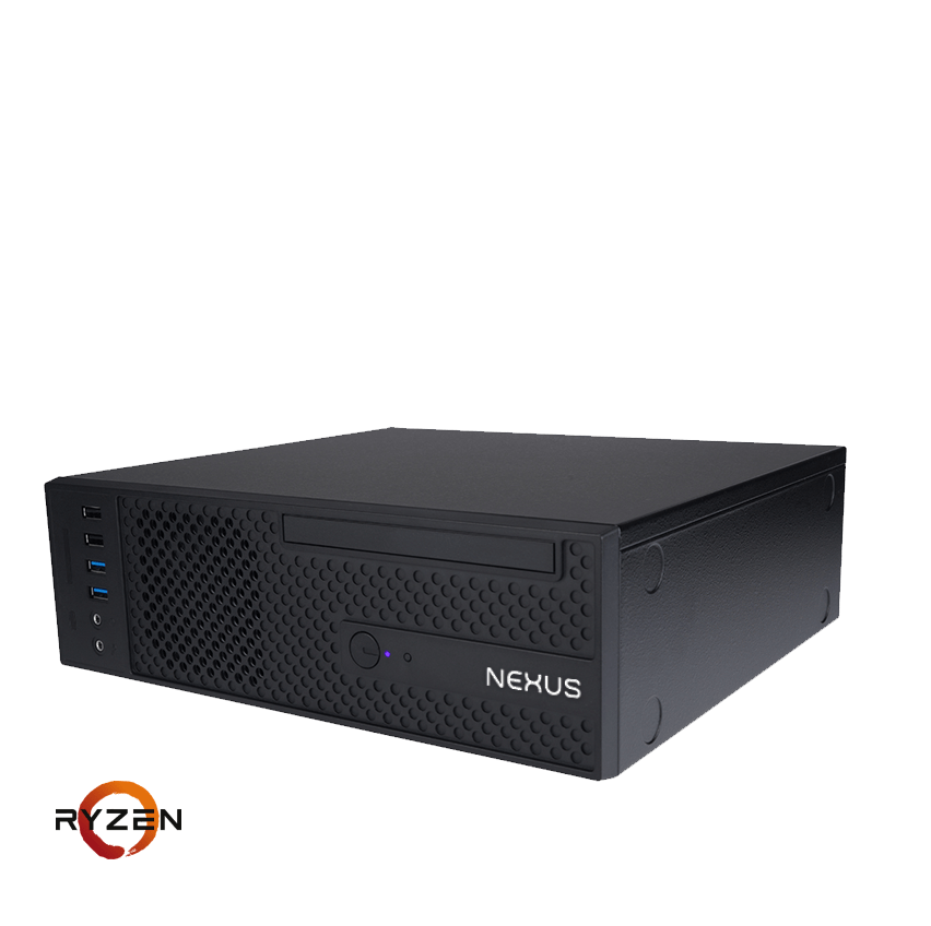 Desktop NEXUS Prime SFF, com chassis micro-ATX, suporte para processadores AMD RYZEN.
